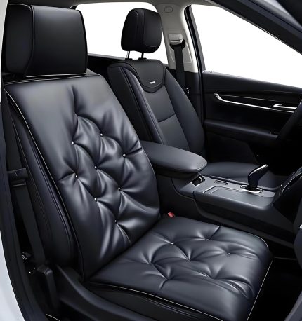 Car Seat Cushion Black, Faux Leather Waterproof and Comfortable Seat Protector, Front Bottom Car Seat Covers with Storage Bag, Suitable for Most Vehicles or Office and Home Seats – 1 Pieces